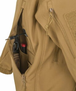 Gunfighter Jacket is a lightweight outer layer with light fleece lining. Designed to be used by LE/Mil units as urban tactical apparel and satisfy their requirements. Our feedback and experience shows that civilians are as keen to approve its functionality and quality. This jacket provides maximum protection against wind, light rain and dirt, while maintaining high breathability. The collar-stowed hood can be fast deployed and adjusted to the shape and size of the head & even with headgear or headset on. To extract the hood quickly we used a two-way zipper. The layout of the pockets & seven of them in total & allows space for storing essentials within easy reach. Two external zippered breast pockets have internal organizers and lanyard D-rings. There’s mid-sized internal velcro-closed pocket, two upper sleeve zippered pockets with wiring eyelets, one zippered pocket at left lower sleeve, and a channel pocket at the lower back. Anatomic cut does not hinder user movements, and elbow reinforcements enhance the durability of the garment.