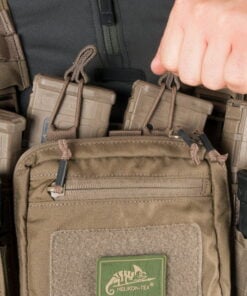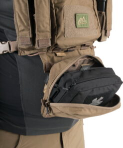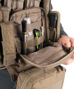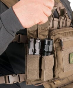 Four fixed pockets with detachable flaps for pistol magazines, multitools and flashlights