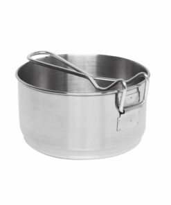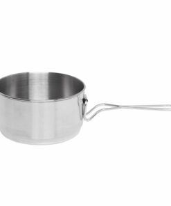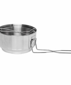 Set of pots consisting of: a 1L pot (15 cm diameter), a 0,7L pot (13 cm diameter) and a lid with a diameter of 15,5 cm, which can be conveniently used as a frying pan. Made of electropolished stainless steel, which allows you to cook directly on the fire without the risk of burning your cookware.