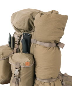 ALICE, one of the time-established backpack lines, served us as a model while designing this great piece of bushcraft gear – the Matilda® backpack. Each Matilda’s pocket has a drawstring sleeve to protect contents from spillage. The pockets are sewn on the corners, leaving a center channel capable of carrying e.g. a small axe through. Additional MOLLE/PALS pouches can be added at various points. Two compression ribbons are fitted at the sides that can also be used for foam camping mat carry & with another two at the bottom. We combined the Cordura® 500D with Nylon 210D to guarantee the durability in key points, while allowing a lighter weight.