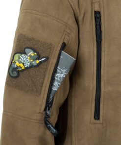 Patriot Heavy Fleece Jacket ir vismodernākā no mūsu vilnas jaku piedāvājuma. Tas ir paredzēts taktiskai lietošanai ekstremālos laikapstākļos.Patriot Heavy Fleece Jacket ir vismodernākā no mūsu vilnas jaku piedāvājuma. Tā ir paredzēta taktiskai lietošanai ekstremālos laikapstākļos. Jakai ir regulējama kapuce ar nelielu aizsargu papildu aizsardzībai, kā arī komplekts kabatām taktiskām lietām. Krūšu kabatās ir vadu cilpiņas un nelieli ierīču organizatori. Trīs ārējās kabatas ir viegli sasniedzamas un atrodas gan augšējā, gan kreisajā apakšējā piedurknē, nodrošinot papildu glabāšanas iespējas. Elkoņi ir pastiprināti, lai nodrošinātu papildu izturību pret nodilumu. Jaku var individuāli regulēt ar Velcro regulējamām aprociņām un elastīgām aukliņām kapucē un jakas apakšā. Patriot ir daudzpusīgs un izturīgs augšējais apģērbs, kas piemērots aukstiem klimatiskajiem apstākļiem.