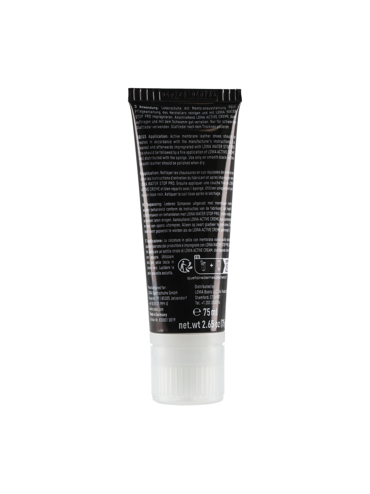 LOWA Active Creme Black ir augstas kvalitātes uz vaska bāzes veidots kopšanas krēms, kas paredzēts LOWA taktiskajiem un drošības apaviem no melnas gludās ādas. Šis krēms dziļi baro un mīkstina ādu, novērš tās izžūšanu un plaisāšanu, vienlaikus atjaunojot un pastiprinot melno krāsu. Rezultātā apavi iegūst profesionālu, koptu un ilgnoturīgu izskatu.