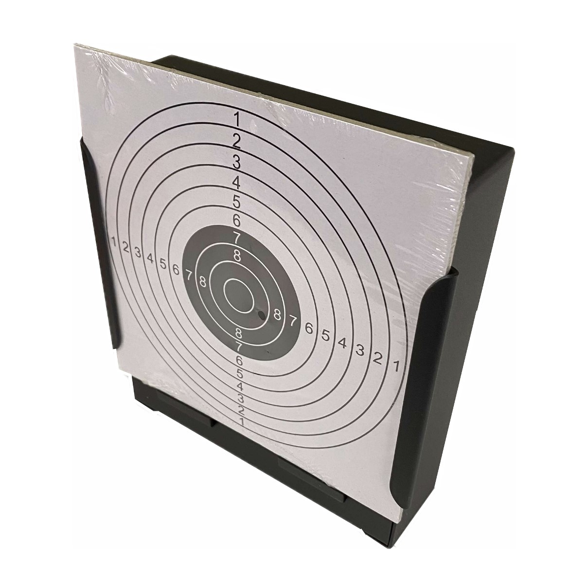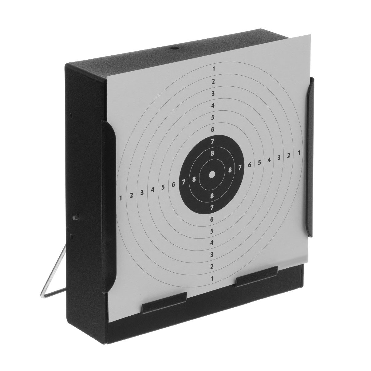 Praktisks un drošs mērķa turētājs, kas paredzēts pneimatisko ieroču šaušanai. Konstrukcija ļauj viegli nostiprināt papīra mērķus un vienlaikus savākt izšautās lodītes vienuviet. Tas ir īpaši svarīgi, ja tiek izmantotas svina lodes — lodes uztvērējs palīdz novērst svina nonākšanu augsnē un apkārtējā vidē.