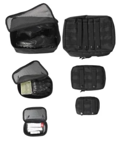 Trīs dažāda somiņas, kuras var izmantot kā organizētājus – lai saturs, piemēram, čemodāns vai mugursoma, būtu kārtīgs un drošs, vai kā papildu kabatas. Pateicoties MOLLE sistēmai, kabatas var piestiprināt, piemēram, mugursomai, palielinot tās ietilpību atbilstoši savām vajadzībām.