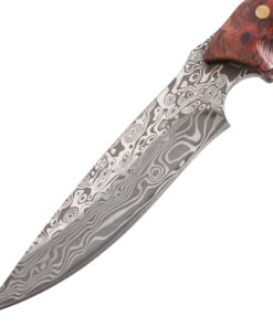 Asmens ir izgatavots no nerūsējošā tērauda 440 (65×13) ar dekoratīvu kodinājumu, kas imitē Damaskas tērauda rakstu, piešķirot nazim elegantu un pamanāmu izskatu. Optimāla cietība (50–52 HRC) nodrošina labu asuma noturību un izturību.