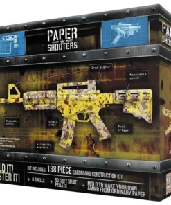 Современные развлечения для взрослых и детей! Такие виды спорта, как страйкбол или пейнтбол, становятся все более популярными, но они не совсем безопасны. Наши бумажные шутеры — отличная альтернатива. Винтовка состоит из твердого пластикового сердечника, покрытого картонным камуфляжным рисунком. В готовом виде «винтовка» имеет предохранительную планку. а также подпружиненный магазин на 6 патронов и полуавтоматический огонь. Разборный боеприпас из заостренных бумажных шариков летит очень точно примерно на 20 метров после выстрела. Бумажные шарики на 100% биоразлагаемы и настолько мягкие, что, в отличие от страйкбола или пейнтбола, не оставляют синяков. Несмотря на травматичность, игрушка имеет возрастное ограничение 14+. В этом комплекте есть все необходимое для игры. Помимо 50 готовых шариков из мягкой бумаги, есть шаблон, с помощью которого можно быстро и легко сконструировать и сделать своими руками бумажную амуницию.